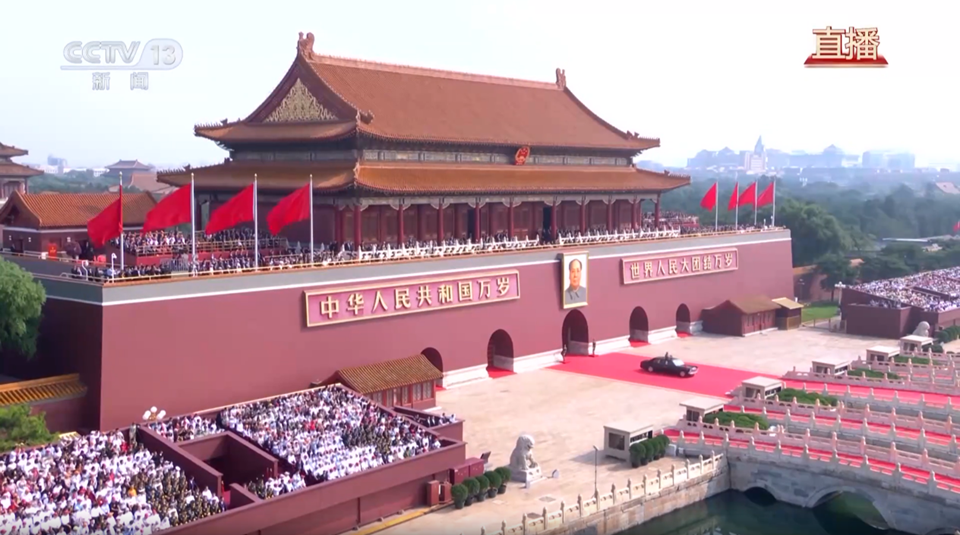 天安门广场以庄重而宏大的布置,迎接纪念中国人民抗日战争暨世界反法西斯战争胜利80周年大会的召开。