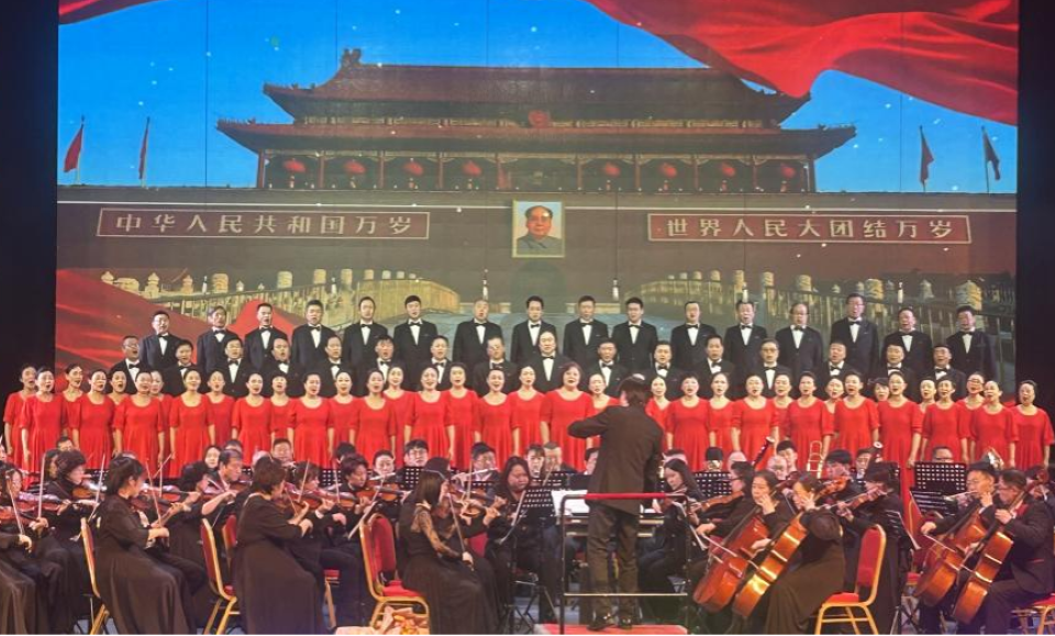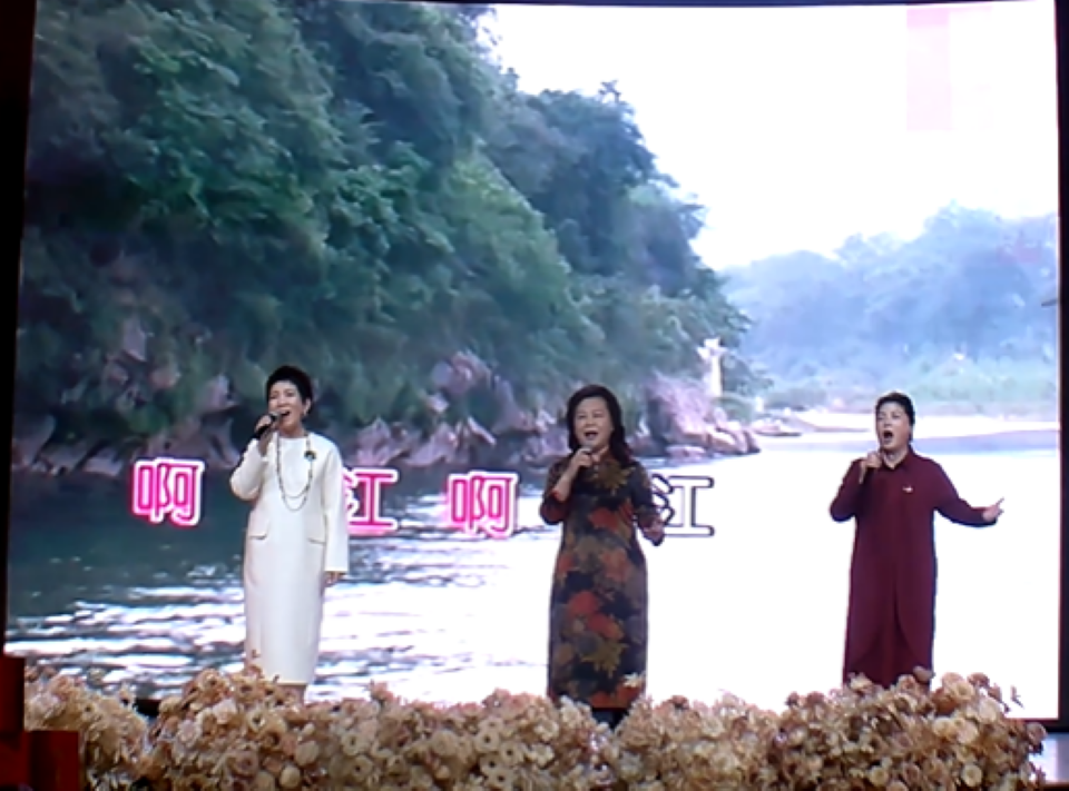 合唱团团长刘宁、交响乐团团长郝红萍、演播艺术团团长闻佳合唱《长江之歌》